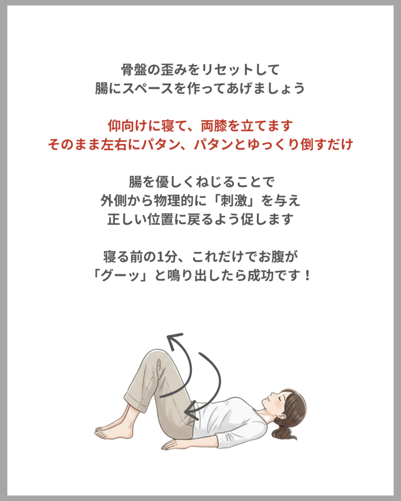 ③ 骨格:1分の「膝倒し」で腸をリリース